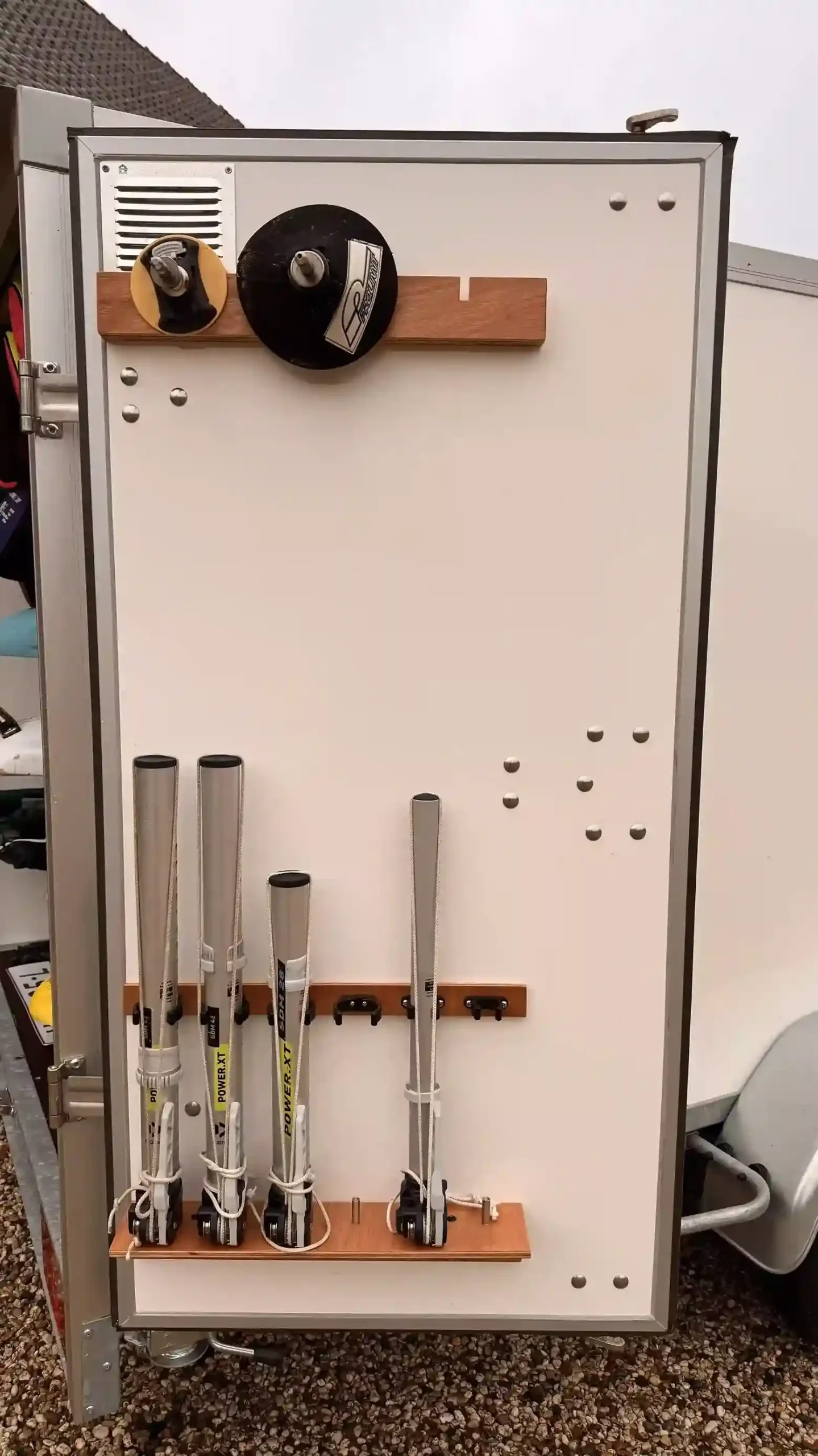 Binnenin zit een stevig opgebouwde kast, speciaal ontworpen om je vinnen, trapeze, tools en andere essentials netjes te organiseren. Meerdere vakken zorgen ervoor dat alles z’n eigen plek heeft en snel te vinden is, ook als je haast hebt om het water op te gaan.
